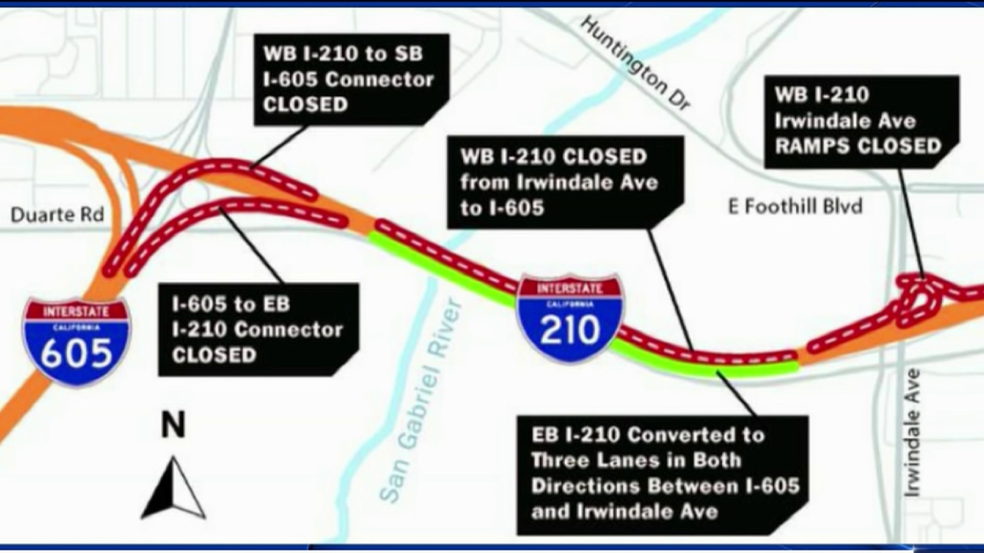 210 Freeway Lanes Will Close for Construction From July 20 to July