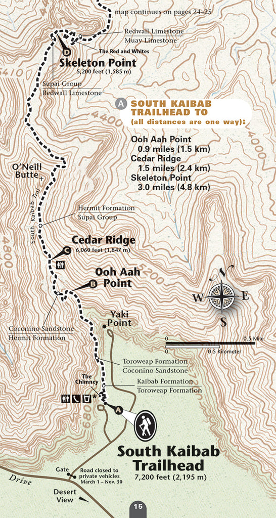South Kaibab Trail Map – Just as the North Kaibab Trail begins at the North Rim, the South Kaibab Trail begins at the South Rim and ventures into the Grand Canyon down to the Colorado River. The 6.3-mile South Kaibab . Still, there are shady spots along the trail and rest houses that provide water for thirsty hikers. South Kaibab Trail (Accessible at Yaki Point, off of Desert View Drive, along the South Rim.) .